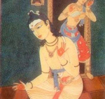 *My beloved, offer the fresh buds of your enchanting feet as an ornament upon my head, so the devastating effect of Cupid’s poison may be alleviated and the harsh fire of amorous desires may also be relieved.*